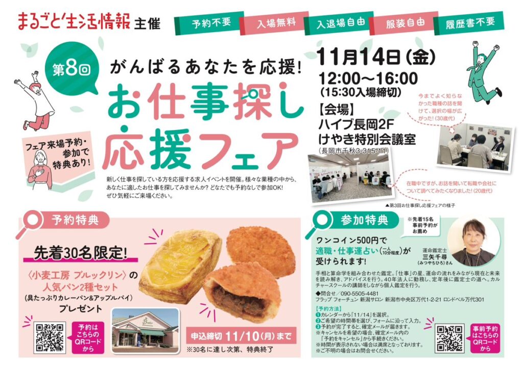 新しく仕事を探している方を応援する求人イベントを開催。第8回は11/14(金)「ハイブ長岡」が会場!