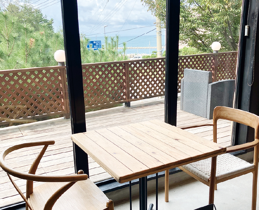 「護国神社」敷地内。海を眺めながら食べられるテラス席が人気。