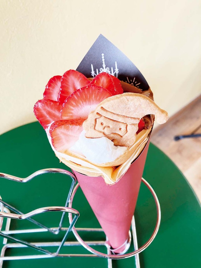 ヌテラチョコクリームと生クリームに、いちごをたっぷりトッピング。生クリームは自家製カスタードクリームに変更OK。クリスマス気分を楽しめる、スペシャルクレープです。