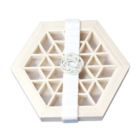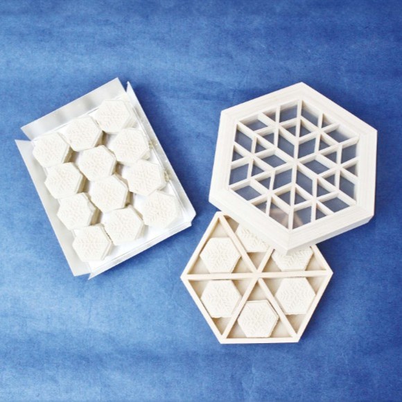 日本伝統の組子細工を手掛ける『組子屋 継』のオリジナル箱に、徳島県産和三盆を使った濃厚ながら上品な甘さの「落雁」を詰めました。食後は小物入れとしても愉しめる逸品です。